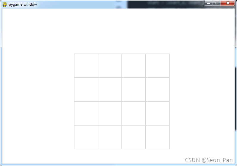 將主循環(huán)代碼修改如下,注意:網(wǎng)格線是繪制在整個圖層組的最上層,才不會被方格和背景覆蓋掉。運行即可繪制出初始棋盤,如圖為 4X4 的規(guī)格。