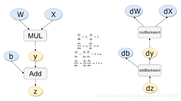 # 計算流量 x = torch.rand(1) w = torch.rand(1, requires_grad=True) b = torch.rand(1, requires_grad=True) y = w * x z = y + b print(x.requires_grad, w.requires_grad,b.requires_grad, z.requires_grad) print(x.is_leaf, w.is_leaf, b.is_leaf, y.is_leaf,z.is_leaf)
