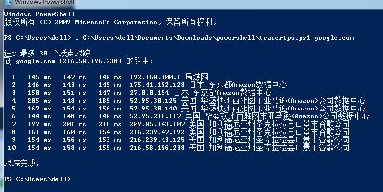 原創(chuàng)powershell腳本小工具ctracert.ps1跟蹤路由(win8以上系統(tǒng))