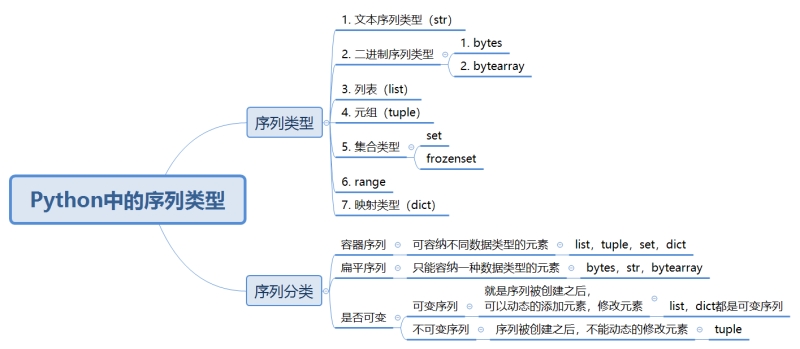 了解完了序列的基本概念,那么在Python中一共有哪些序列類型呢?如下圖所示: