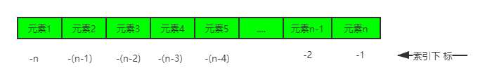 當然與C語言中數(shù)組不同的是,Python還支持索引值是負數(shù),該類的索引是從右向左計數(shù)。換句話說,就是從最后一個元素開始計數(shù),從索引值-1開始遞減,即第n個元素的索引值是-1,第1個元素的索引值是-n,如下圖所示: