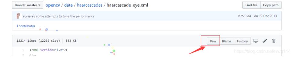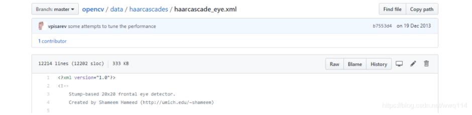 人臉檢測和眼睛檢測要用到haarcascade_eye.xml和haarcascade_frontalface_default.xml這兩個(gè)文件,這兩個(gè)文件可以在OpenCV的官網(wǎng)下載,具體下載方法如下: