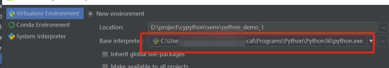 這里L(fēng)ocation是用來(lái)設(shè)置項(xiàng)目的虛擬環(huán)境,具體可以參考pycharm設(shè)置虛擬環(huán)境與更換鏡像教程Base interpreter 用來(lái)設(shè)置解釋器的路徑。