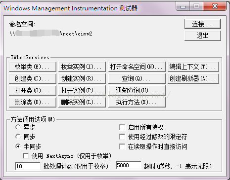 遠(yuǎn)程啟用開啟之后可以在cmd命令窗口輸入wbemtest測試是否可以連接遠(yuǎn)程服務(wù)器,如圖: