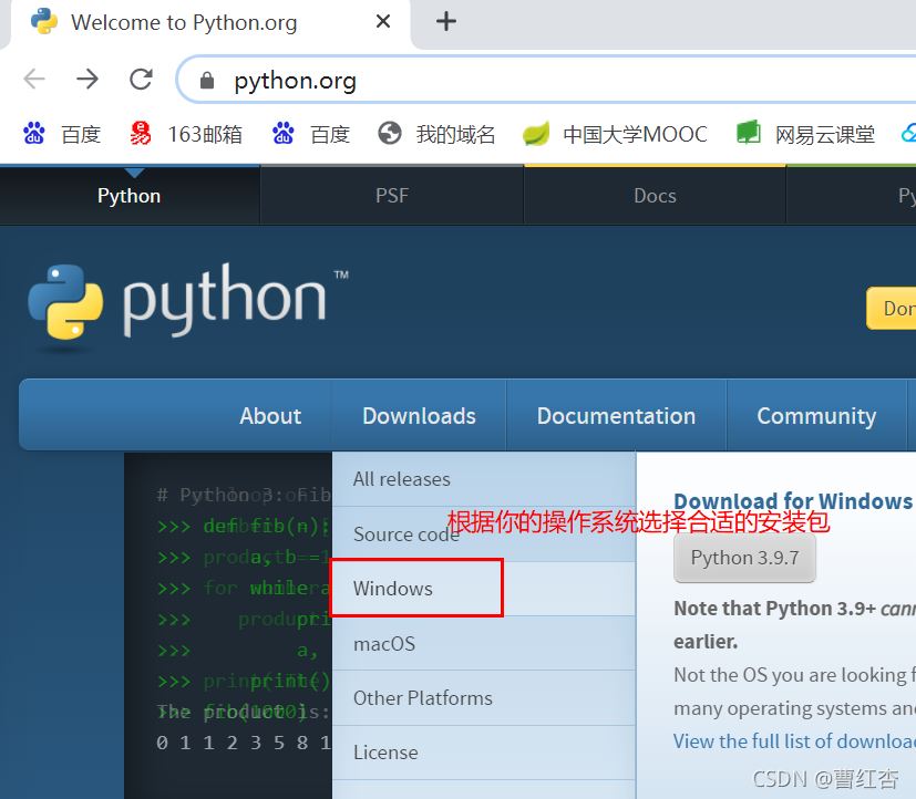 點(diǎn)擊導(dǎo)航欄download->windows ,在打開(kāi)的頁(yè)面下載選擇合適python版本的安裝包下載。