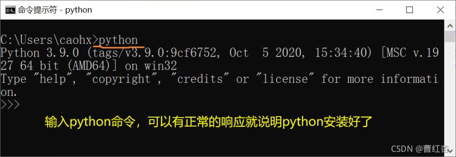 打開(kāi)命令行窗口(cmd) ,輸入python后,系統(tǒng)能正常響應(yīng),并進(jìn)入python環(huán)境,則說(shuō)明安裝成功了。