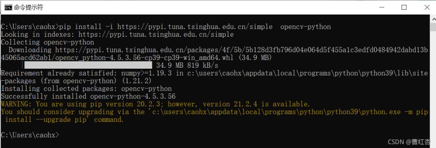 pip install -i https://pypi.tuna.tsinghua.edu.cn/simple opencv-python