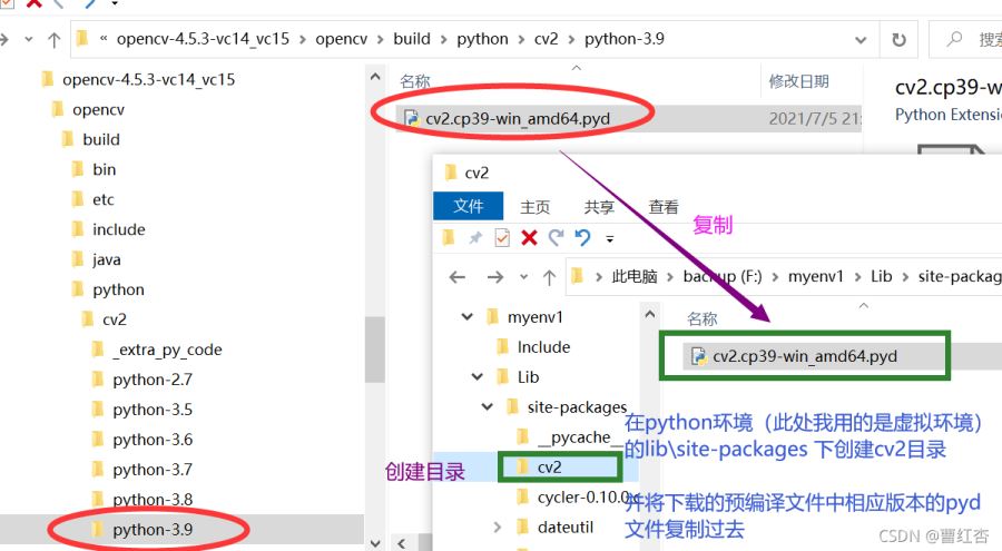 在python官網(wǎng)下載預(yù)編譯的opencv文件后,解壓。