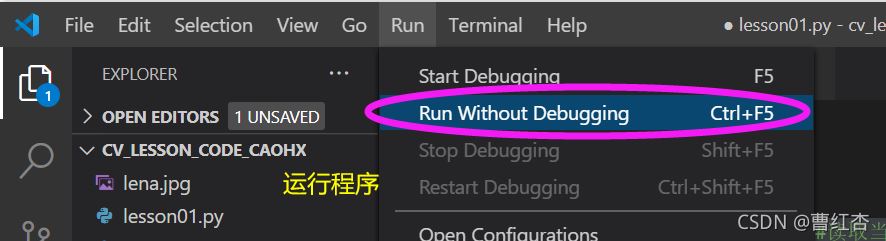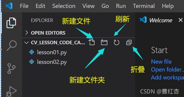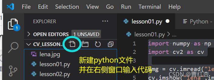 在vscode中點(diǎn)擊新建一個(gè)python文件,如lesson01.py