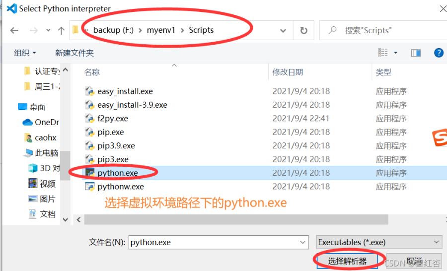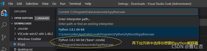 選擇命令后,系統(tǒng)彈出可選的python解釋器環(huán)境,根據(jù)需要選擇