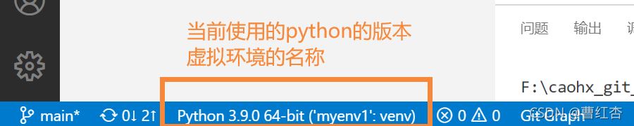 設(shè)置之后,vscode左下角顯示了當(dāng)前使用的虛擬環(huán)境,及其python的版本