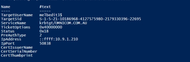 #Get-WinEvent -ComputerName $DC.DC -LogName Security -FilterXPath "*[System[(EventID=529 or EventID=644 or EventID=675 or EventID=676 or EventID=681 or EventID=4625) and TimeCreated[timediff(@SystemTime) <= 86400000]]]" #-MaxEvents 50