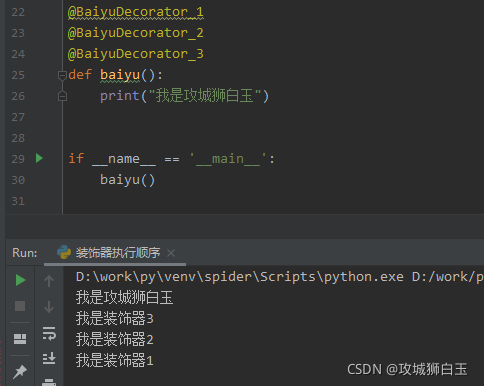 # baiyu() # 用語(yǔ)法糖之后,就可以直接調(diào)用該函數(shù)了