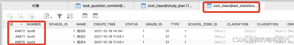 增量同步到 目標數據庫 axt_statistics 庫的zxxt_class 表中