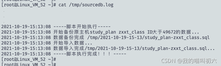 echo "${DateTime} -----腳本執(zhí)行完成?。?!-----" >> /tmp/sourcedb.log