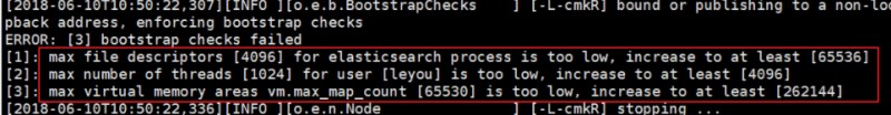 [3]: max virtual memory areas vm.max_map_count [65530] likely too low, increase to at least [262144]