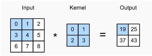 二維的互相關(guān)運(yùn)算。陰影部分是第一個輸出元素,以及用于計算這個輸出的輸入和核張量元素: 0 x 0 + 1x1 + 3x2 +4x3 = 19。由此可見互相關(guān)運(yùn)算就是一個乘積求和的過程。在二維互相關(guān)運(yùn)算中,卷積窗口從輸入張量的左上角開始,從左到右、從上到下滑動。這里我們設(shè)置步長為1,即每次跨越一個距離。當(dāng)卷積窗口滑到新一個位置時,包含在該窗口中的部分張量與卷積核張量進(jìn)行按元素相乘,得到的張量再求和得到一個單一的標(biāo)量值,由此我們得到了這一位置的輸出張量值。 【我們這里頻繁提到了張量,張量(Tensor)是一個多維數(shù)組,它是標(biāo)量、向量、矩陣的高維拓展?!?/p>