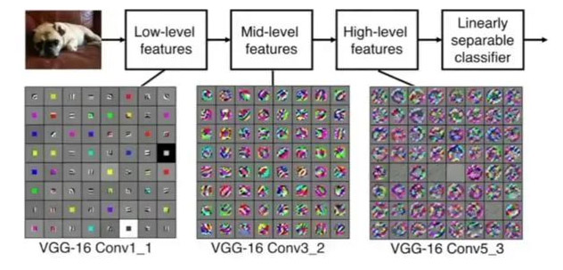 如果用圖像處理上的專業(yè)術(shù)語,我們可以將卷積叫做銳化。卷積其實是想要強(qiáng)調(diào)某些特征,然后將特征強(qiáng)化后提取出來,不同卷積核關(guān)注圖片上不同的特征,比如有的更關(guān)注邊緣而有的更關(guān)注中心地帶等。當(dāng)完成幾個卷積層后(卷積 + 激活函數(shù) + 池化)【后面講解激活函數(shù)和池化】,如圖所示: