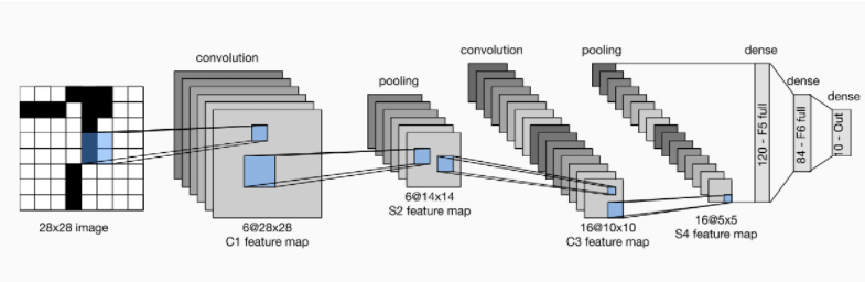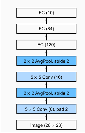X = torch.rand(size=(1, 1, 28, 28), dtype=torch.float32) for layer in net: X = layer(X) print(layer.__class__.__name__,'output shape: \t',X.shape)