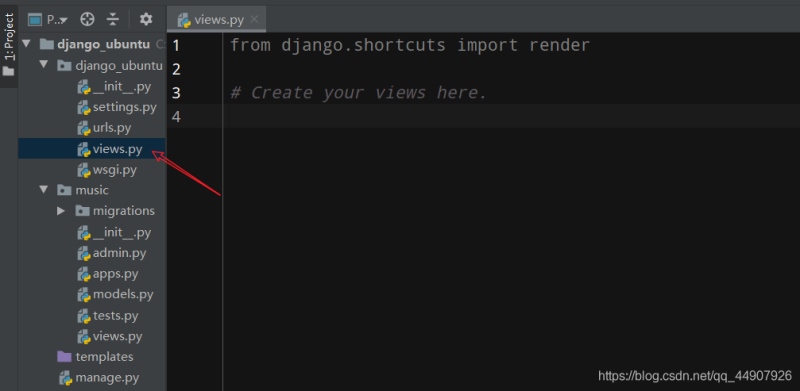 1.在項目目錄下創(chuàng)建視圖文件views.py文件(做的是處理業(yè)務邏輯的操作)