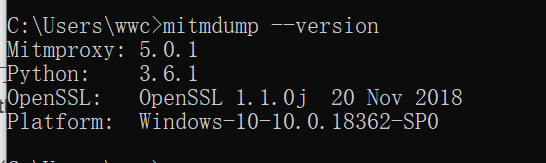 檢查是否安裝成功:命令行中輸入命令查看mitmdump --version