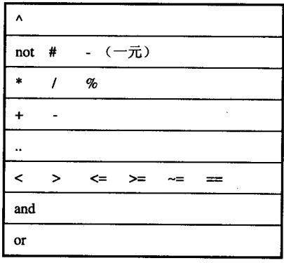 Lua運(yùn)算符優(yōu)先級(jí)順序如下圖所示。