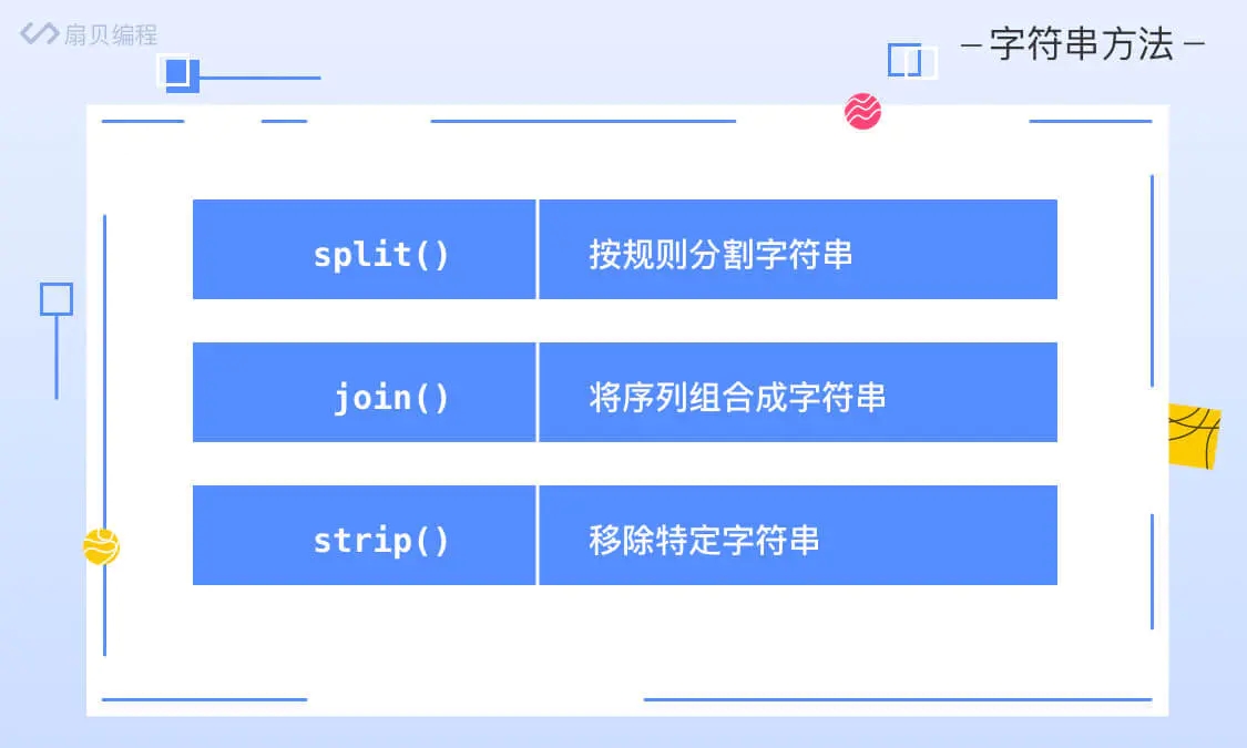 '~~扇貝編程~~'.strip('~') # '扇貝編程'