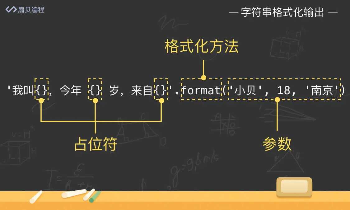 除了之前說的使用 % 運算符 進(jìn)行字符串格式化輸出,我們還可以使用字符串的 format() 方法達(dá)到同樣的效果。