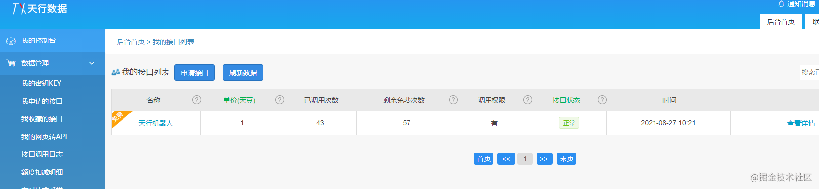 天行機(jī)器人: 天行機(jī)器人, 驗(yàn)證郵箱之后每天可以有100次的免費(fèi)調(diào)用次數(shù),測(cè)試用的話夠了,不想用自己的郵箱的話,可以找一些臨時(shí)郵箱(百度一搜一大堆)。