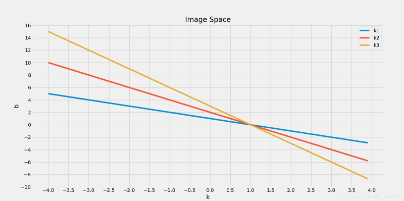 當我們把直線 y = kx + b 畫在指標坐標系上, 如下圖. 我們再從原點引線段到直線上的任一點.