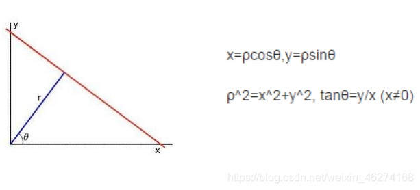 霍夫變換 (Hough Line Transform) 是圖像處理中的一種特征提取技術. 通過平面空間到極值坐標空間的轉換, 可以幫助我們實現直線檢測. 如圖: