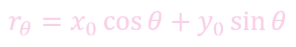 我們可以得到這條線段與 x 軸的夾角為 θ, 距離是 r. 對于直線上的任一點 (x0, y0), 我們可以得到公式:
