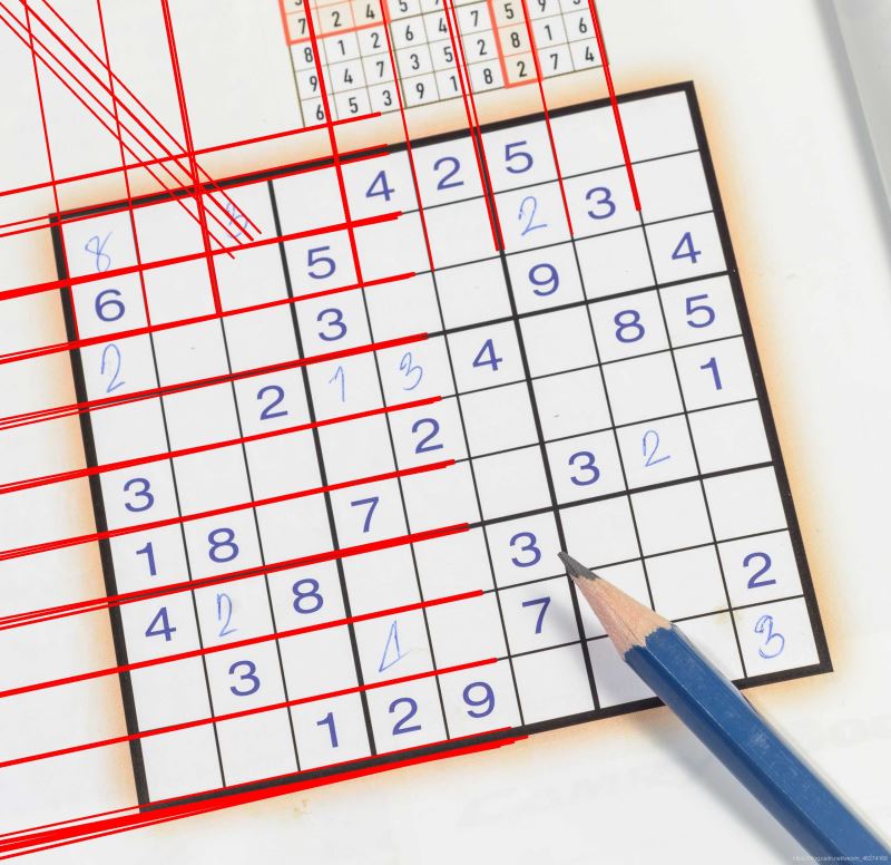 此函數在 HoughLines 的基礎上末尾加了一個代表概率 (Probabilistic) 的 P, 表明它可以采用累計概率霍夫變換, 來找出二值圖像中的直線.