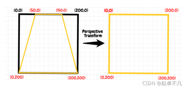 直觀的來看,透視變換的作用就是將左側(cè)圖像的坐標(biāo)點(diǎn)