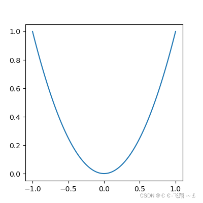 def matplotlib_figure(): x = np.linspace(-1, 1, 100) y1 = 2 * x + 1 y2 = x ** 2 # 平方 plt.figure() # figure是視圖面板 plt.plot(x, y1) # 這里再創(chuàng)建一個視圖面板,最后會生成兩張圖,figure只繪制范圍以下的部分 plt.figure(figsize=(4, 4)) # 設(shè)置視圖長寬 plt.plot(x, y2) plt.show()