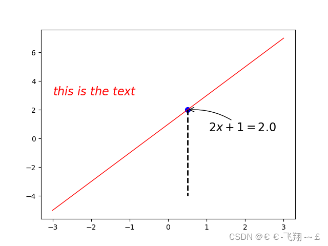plt.annotate(r'$2x+1=%s$' % y0, xy=(x0, y0), xytext=(+30, -30),