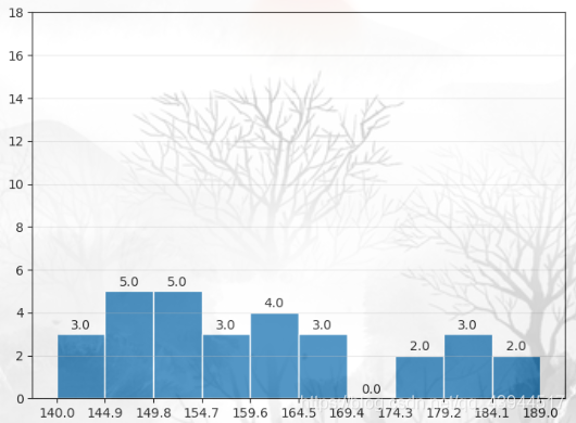 # 參數(shù)1:要統(tǒng)計的數(shù)據(jù); 參數(shù)2:區(qū)間信息