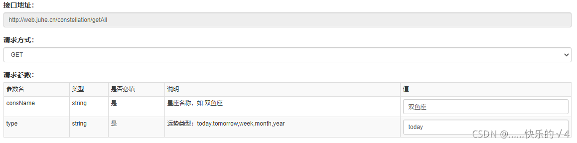 url = "http://web.juhe.cn/constellation/getAll?" + 'consName={}&type=today&key=自己的請(qǐng)求key'.format(constellation)