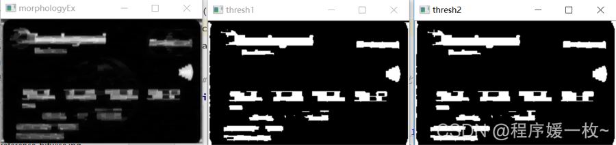 識(shí)別過(guò)程2——形態(tài)學(xué)閉合圖 VS 二值化圖1 VS 閾值化圖2 如下: