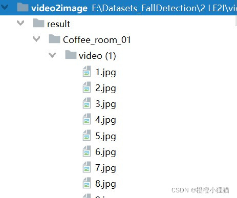 每個副文件夾下都將生成與視頻名相對應(yīng)的子文件夾,并按視頻幀數(shù)順序轉(zhuǎn)換為jpg圖片。
