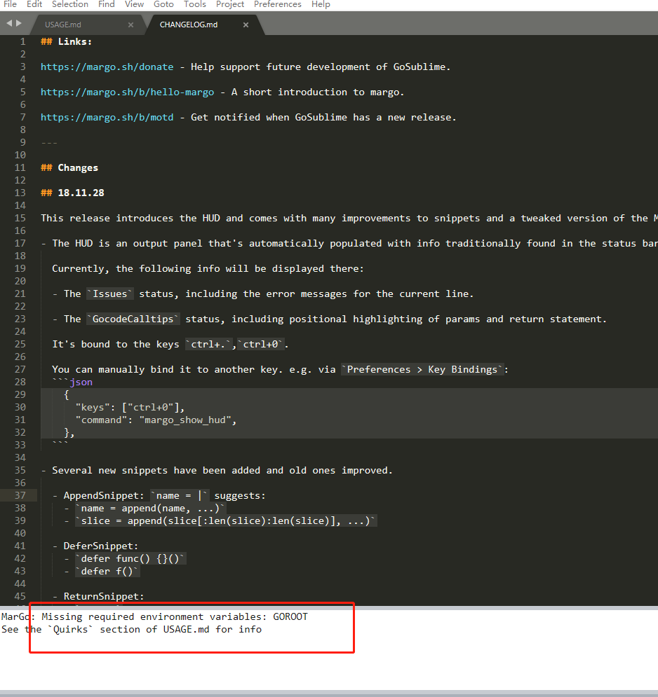 使用 'ctrl+.+x'(按住ctrl,然后順序按 . x)打開margo配置文件。(可以不修改,隨意回車保存)保存后,sublime會自動應(yīng)用配置。