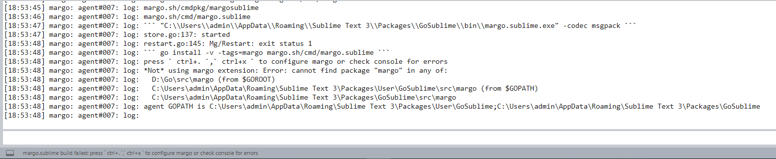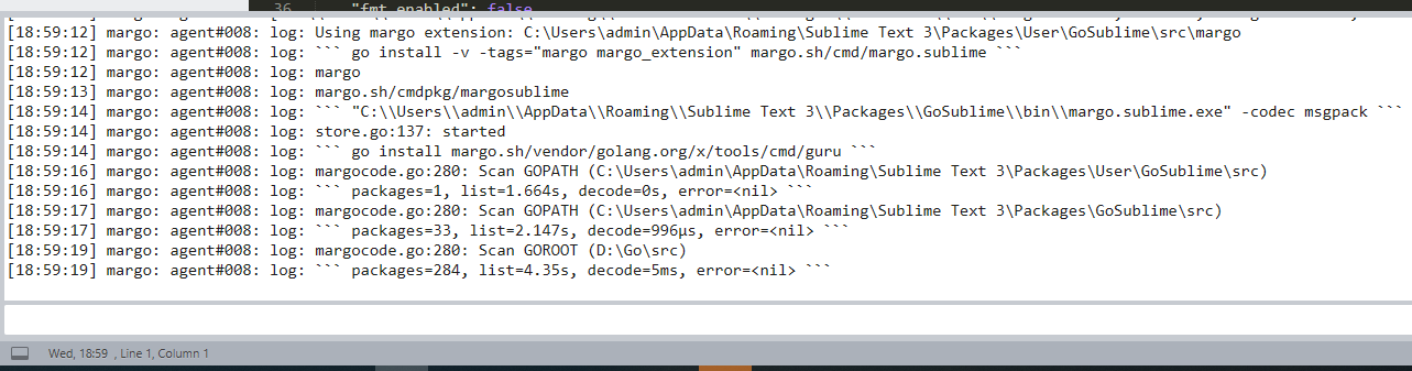 下載完后,sublime會自動檢測到插件并進行安裝。如果沒有安裝go語言環(huán)境,會報錯