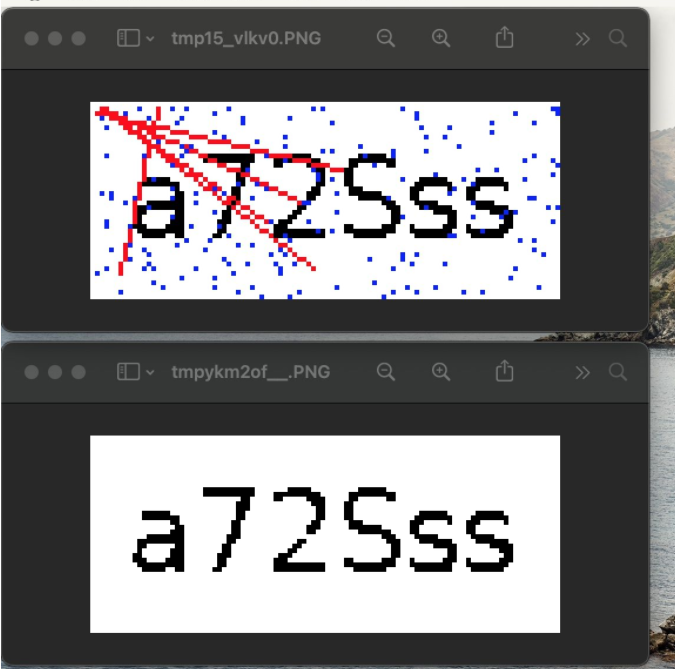 不過,后面發(fā)現(xiàn),有些紅色線段和藍(lán)色點,是和驗證碼重合的。