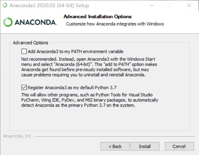 勾選Register Anaconda3 as my default Python3.7,不推薦勾選第一個