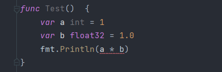 fmt.Println(float32(a) * b)