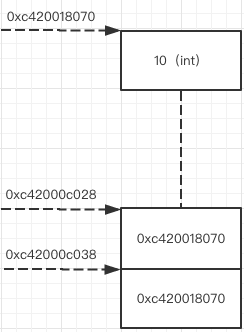 不管是0xc42000c028還是0xc42000c038,我們都可以稱之為指針的指針,他們指向同一個指針0xc420018070,這個0xc420018070又指向變量i,這也就是為什么我們可以修改變量i的值。