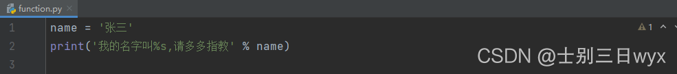 字符串類型的變量需要使用 %s 進行占位,后面直接寫 % 變量名即可