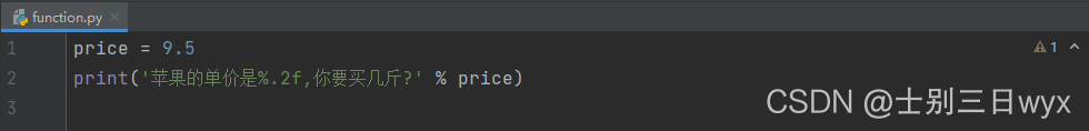 浮點型的變量需要使用 %f 進行占位,在 % 后面指定變量名即可