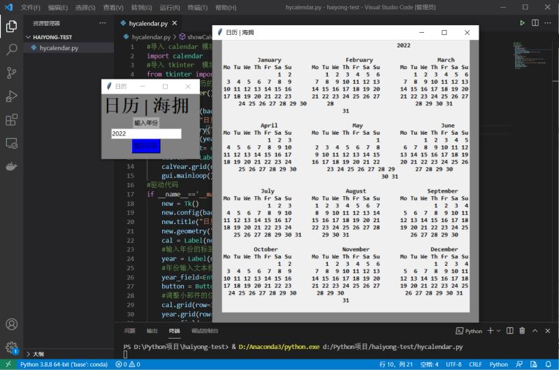 ShowCalender 函數(shù)正在顯示日歷。您在搜索框中輸入年份并按下 Enter 鍵時,將在此處管理日歷的顯示方式。您可以在此處設置灰色的背景顏色,并且可以根據(jù)需要在代碼中進行更改。您還可以在此處設置日歷的尺寸為 550×600。然后您要求以整數(shù)形式輸入年份。一旦用戶輸入年份日歷內(nèi)容,就會通過將年份作為參數(shù)從 python 的日歷模塊中獲取。