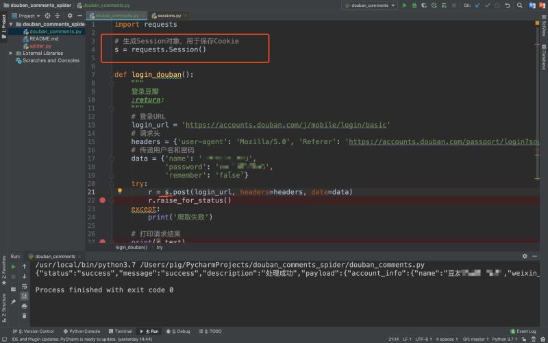- 分析豆瓣的登錄接口并用requests庫(kù)實(shí)現(xiàn)登錄并保存cookie